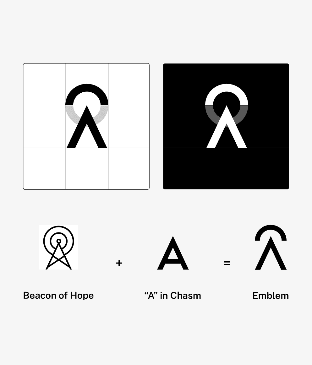 The visual strategy centers on the "A" beacon symbol, representing a signal for common ground. A vibrant gradient system was developed to symbolize diverse perspectives converging, paired with a custom illustration style. This identity extends into a robust design system, featuring card patterns and UI elements that balance elegance with a fun, accessible aesthetic.